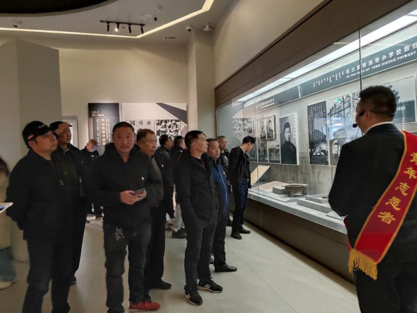 黨員跟隨講解員參觀烏蘭夫紀(jì)念館